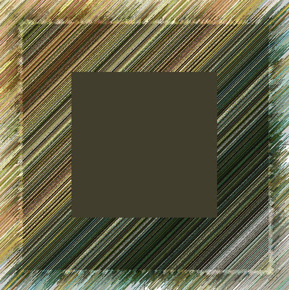To alter the ‘threads’ in the program, users can move the mouse at varying distances from the center of the canvas. It is advised to start at the center and then extrude mouse a few times from the center, to the sides, and back in again as the image will not be erased and act as a paintbrush for the sides of the canvas. Users have the ability to manipulate several inputs within the program. The main variable for a dramatic change is a ‘stamp’ that when called upon by pressing the ‘s’ key will travel the canvas and with its previous path being continuously displayed to create a collective palm frond aesthetic. Each time the ‘s’ key is pressed, a new stamp will appear and begin a separate path. The position upon it starts is also dependent on the mouse position and can create a range of variations when users consider how one control (mouse x, mouse y) alters both the threads and stamp variations. Additionally, users may input a focal square at any point in the program, or by pressing ‘p’ to be used as either a reference point for the position of the threads and fronds, or as another visual variable itself. The sketch also features a save function by pressing ‘k’ and notations along the way for further visual variations by altering coloring, sizing, and image selections used for the program.
